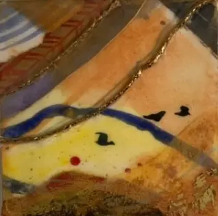 Mixed media with encaustic wax, frame size 15cmx15xcm