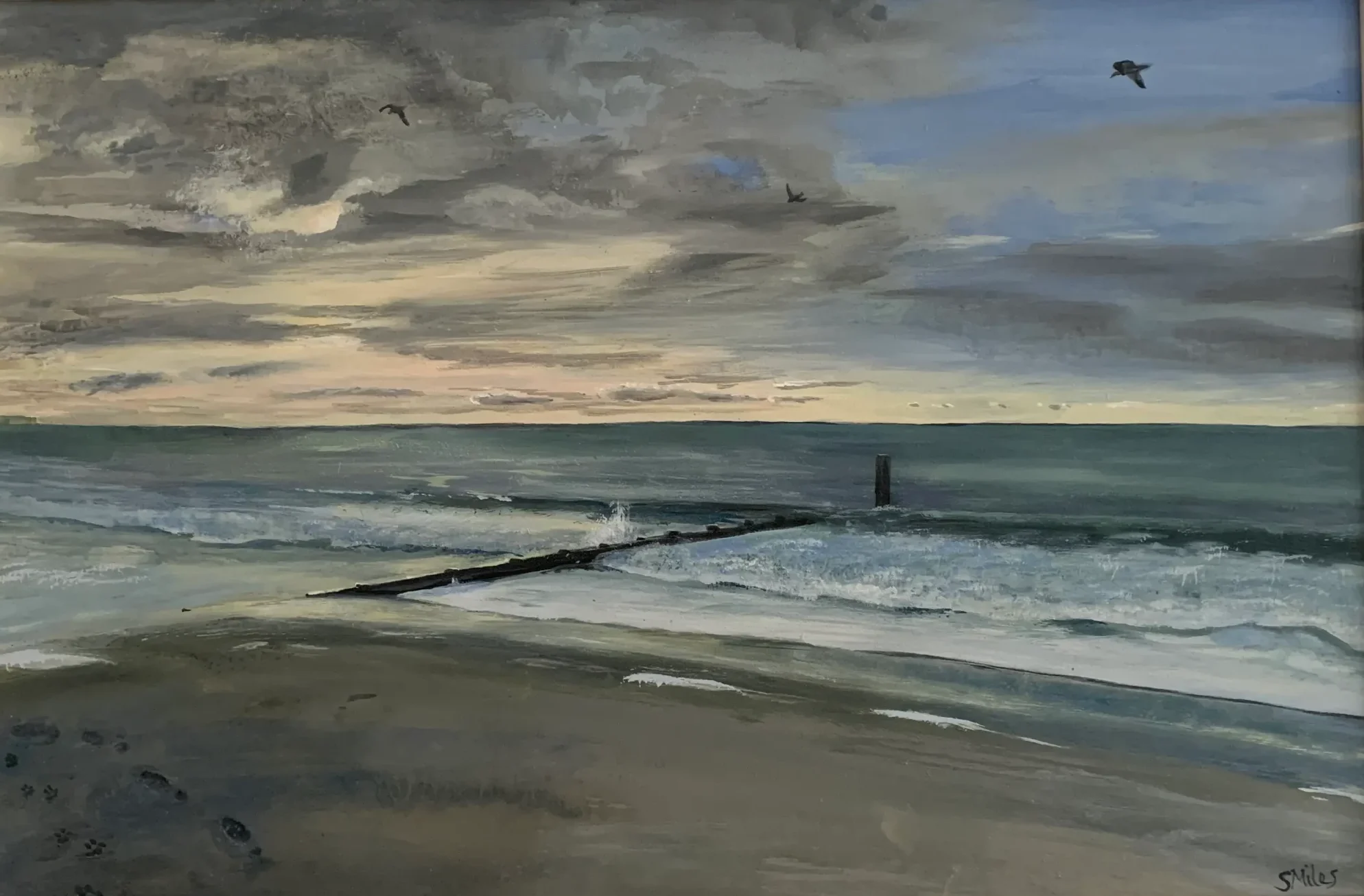 Managed to get to Southbourne beach just after dawn for a stroll with my daughter and the dog. Hence the footprints and pawprints in the sand at the front lefthand corner.