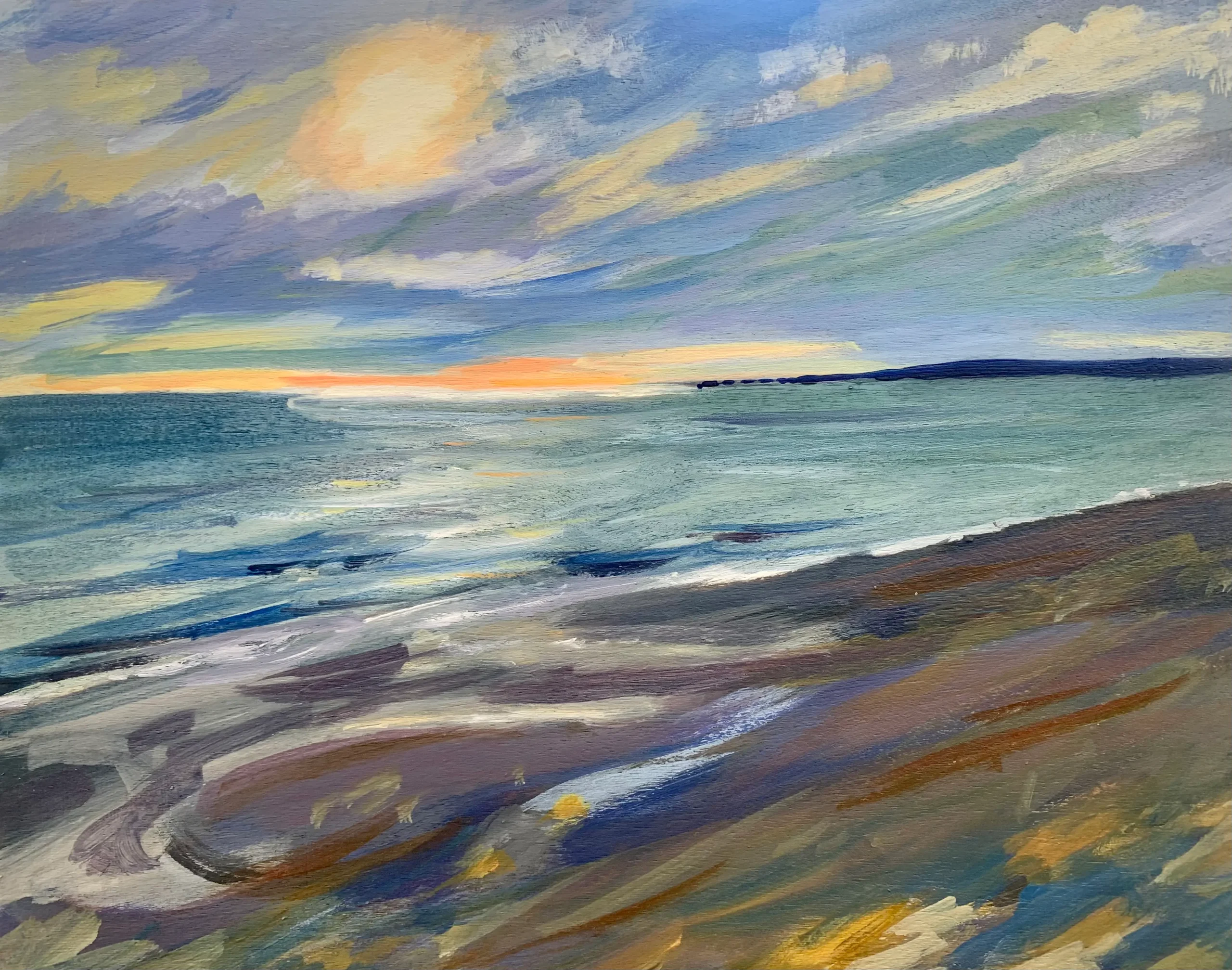 Salcombe Regis, Sidmouth, Dorset. Acrylic on wood. 8×10″ 2024.